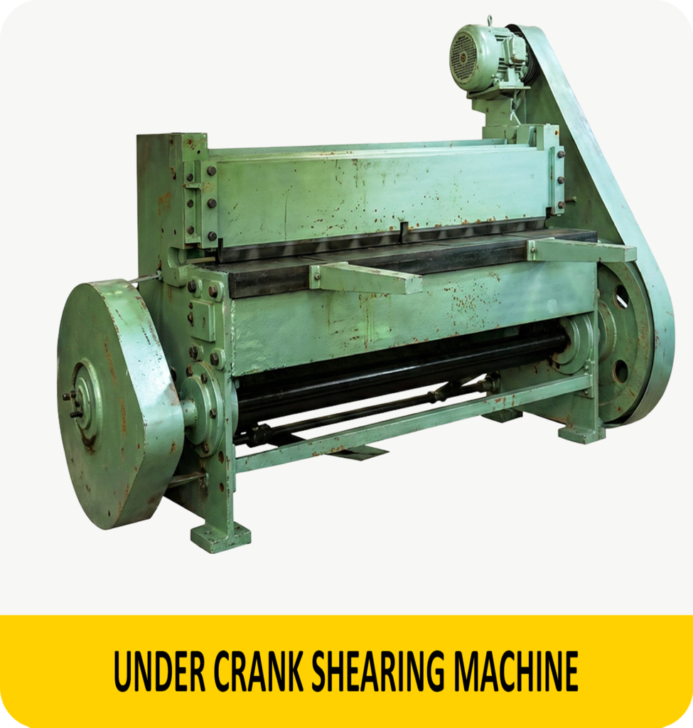 Under crank shearing machines are designed to handle various types of metal sheets, including mild steel, stainless steel, and aluminum. They are known for their durability, consistent cutting performance, and low maintenance requirements. With a rigid frame and precision-engineered components, these machines deliver reliable operation even under continuous industrial use, making them an ideal choice for workshops and production units that demand accuracy and efficiency.
